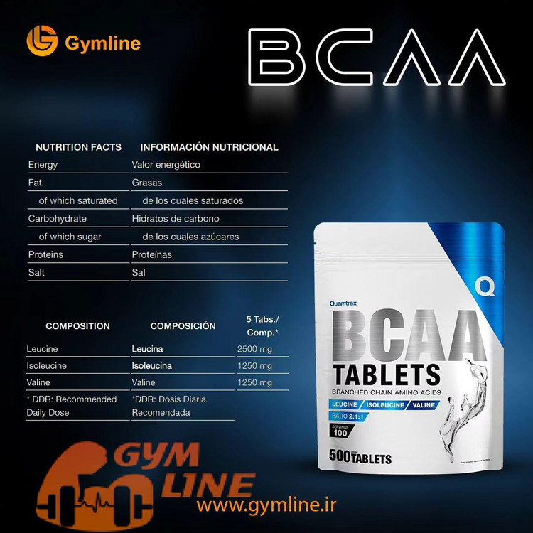 مکمل BCAA Tablets از برند اسپانیایی Quamtrax یک محصول متمرکز بر سه اسید آمینه حیاتی برای عضلات است. این مکمل با فرم قرصی خود، روشی راحت و قابل حمل برای تأمین لوسین، ایزولوسین و والین (BCAA) فراهم میکند که برای حمایت از بافت عضلانی در طول تمرینات سنگین و تسریع ریکاوری، ضروری هستند.