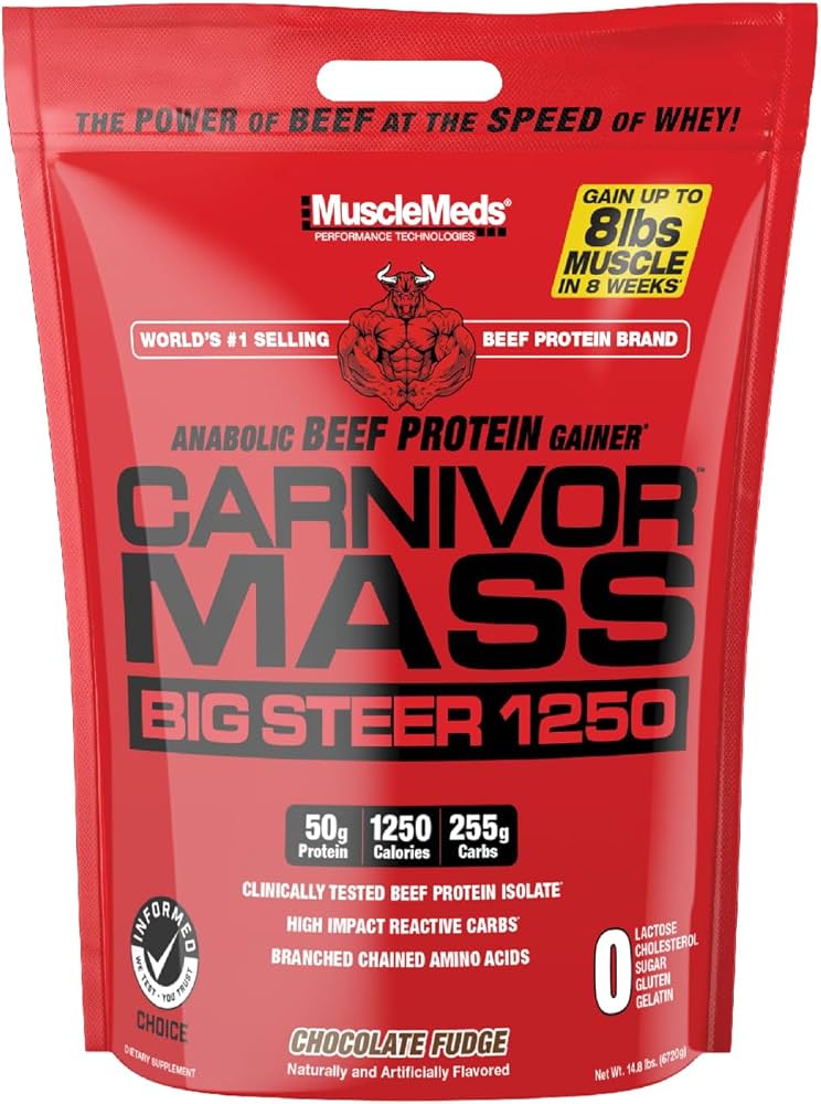 Carnivor Mass Big Steer 1250 از MuscleMeds یک مکمل آنابولیک پیشرو و با کالری بالا است که با هدف افزایش وزن و عضلهسازی سریع طراحی شده است. این محصول به عنوان اولین گینر بزرگ آنابولیک جهان معرفی شده و دورانی را که در آن مجبور بودید برای افزایش وزن، چربی ذخیره کنید، به پایان رسانده است. Carnivor Mass با ترکیب ۵۰ گرم پروتئین ایزوله گوشت گاو (BPI) و ۲۵۵ گرم کربوهیدراتهای میکرونیزه و با سرعت هضم بالا، محیطی ایدهآل برای آنابولیسم انفجاری (رشد عضلانی) ایجاد میکند. این فرمولاسیون پیشرفته، فاقد لاکتوز، کلسترول، شکر، گلوتن و ژلاتین است و برای کسانی که به دنبال جذب سریع مواد مغذی و بدون عوارض گوارشی هستند، یک انتخاب بینظیر محسوب میشود.