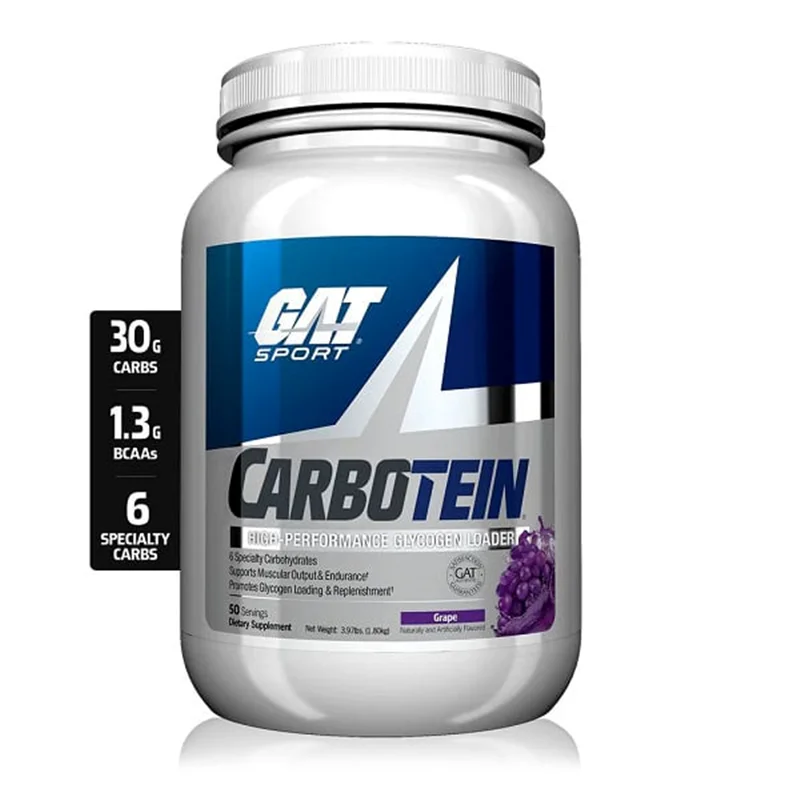 کربوتین کربوهیدرات گت اسپرت GAT SPORT CARBOTEIN یک فرمول کربوهیدرات پیشرفته برای بارگیری گلیکوژن است که استفاده سریع از انرژی را همراه با ریکاوری بعد از تمرین ممکن می سازد. CARBOTEIN به طور منحصر به فردی 6 کربوهیدرات سریع الاثر و ویژه را با آمینو اسیدهای شاخه دار به همراه چندین الکترولیت و واسطه های چرخه اسید سیتریک ترکیب می کند.